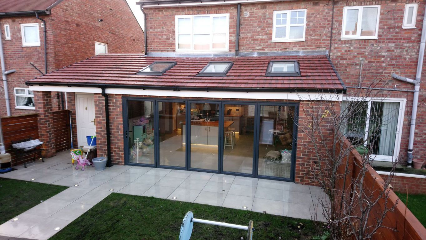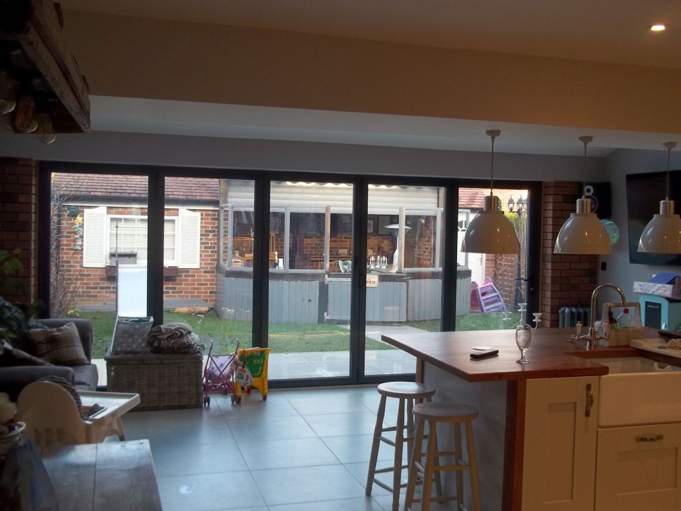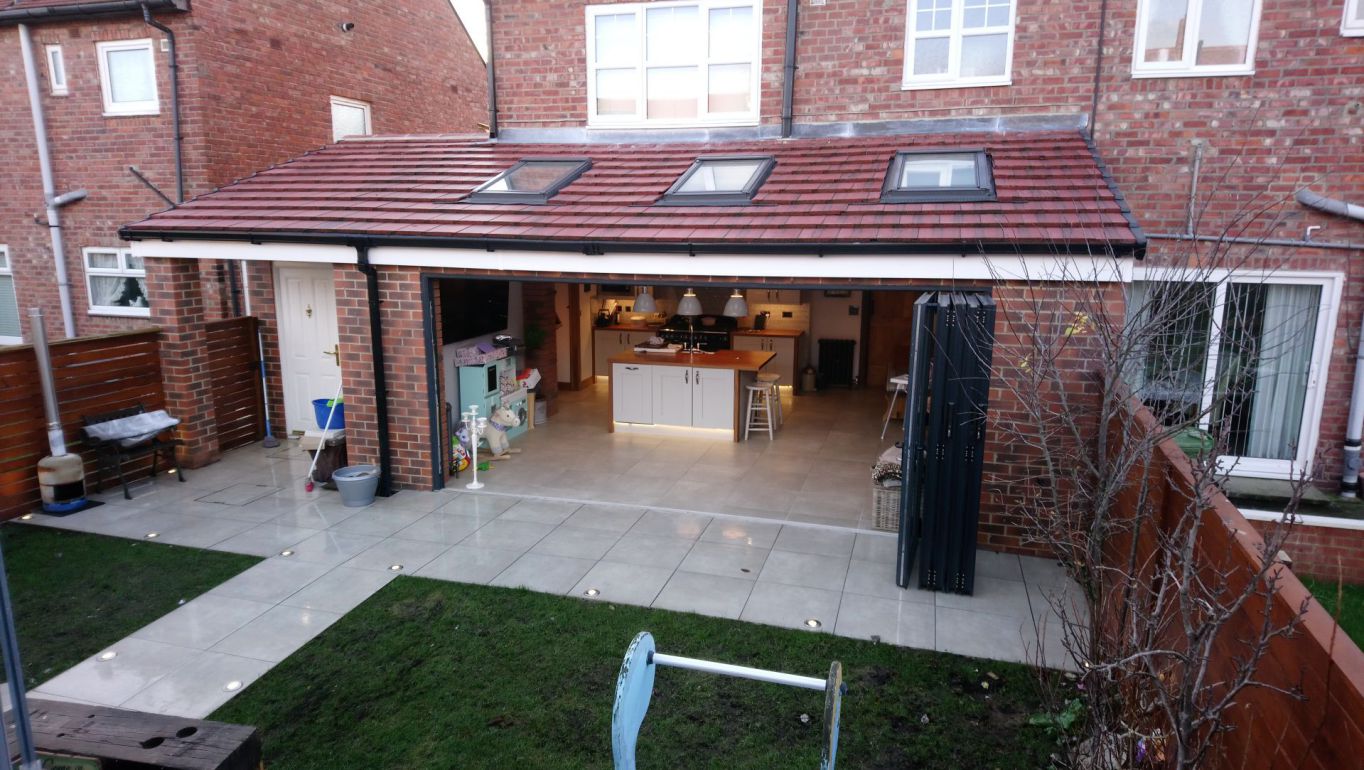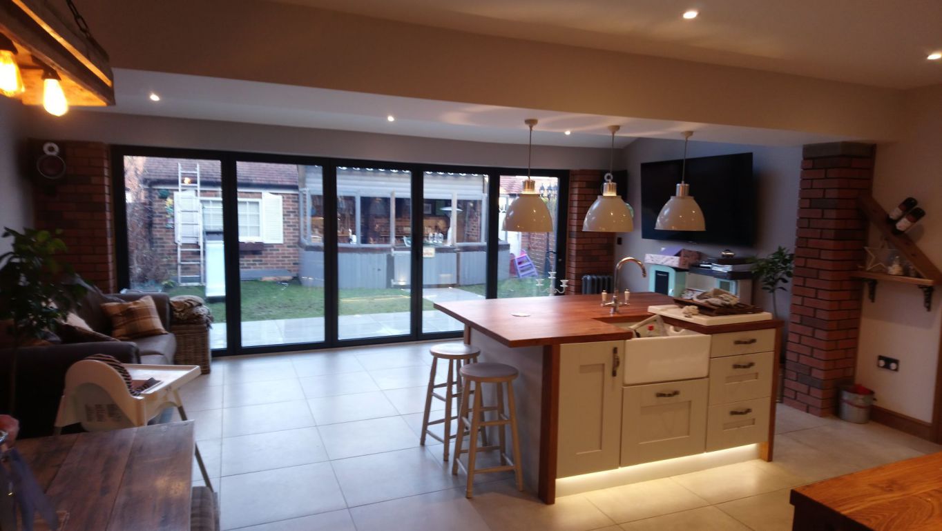 We extended the rear of the house to accommodate a new larger open plan kitchen and dining area, we also added a new WC room to the side.