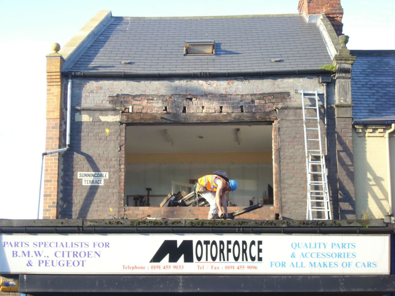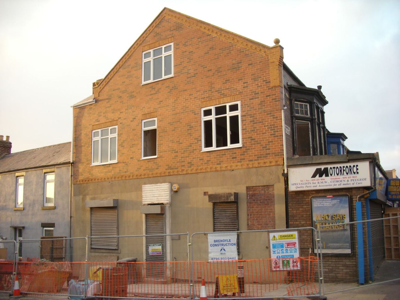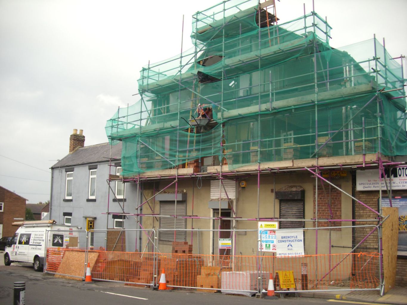 This structure had to be carefully dismantled then built back up, to be made safe during and after work. The full building was then re-plastered with new skirting boards, doors and a new roof to the shop front.