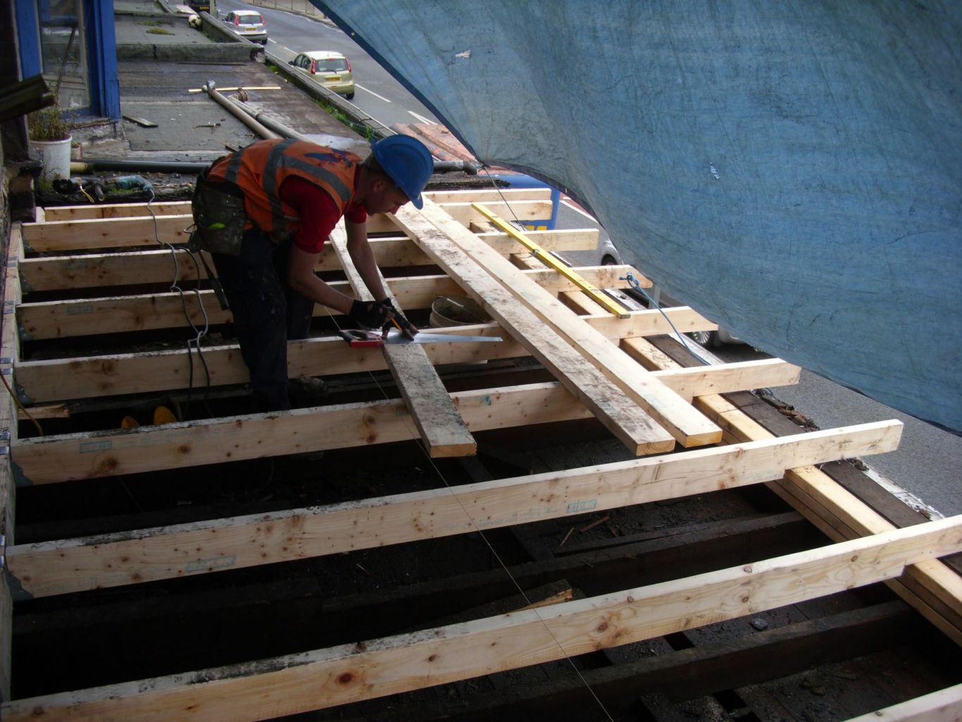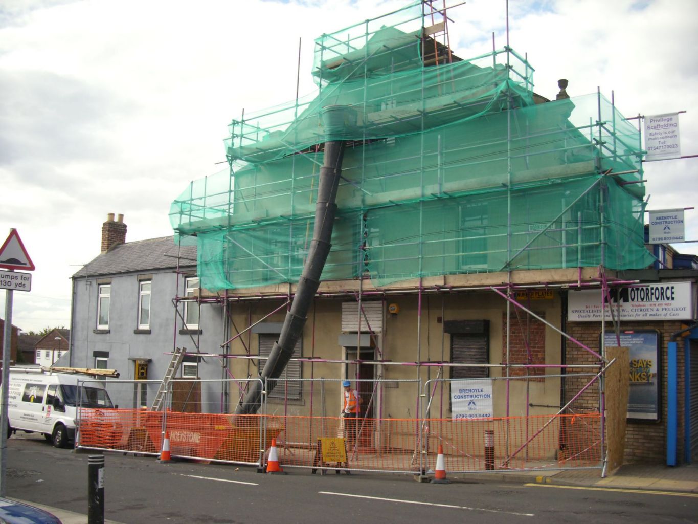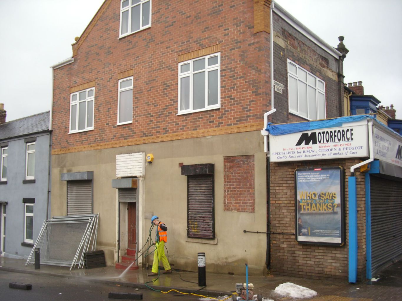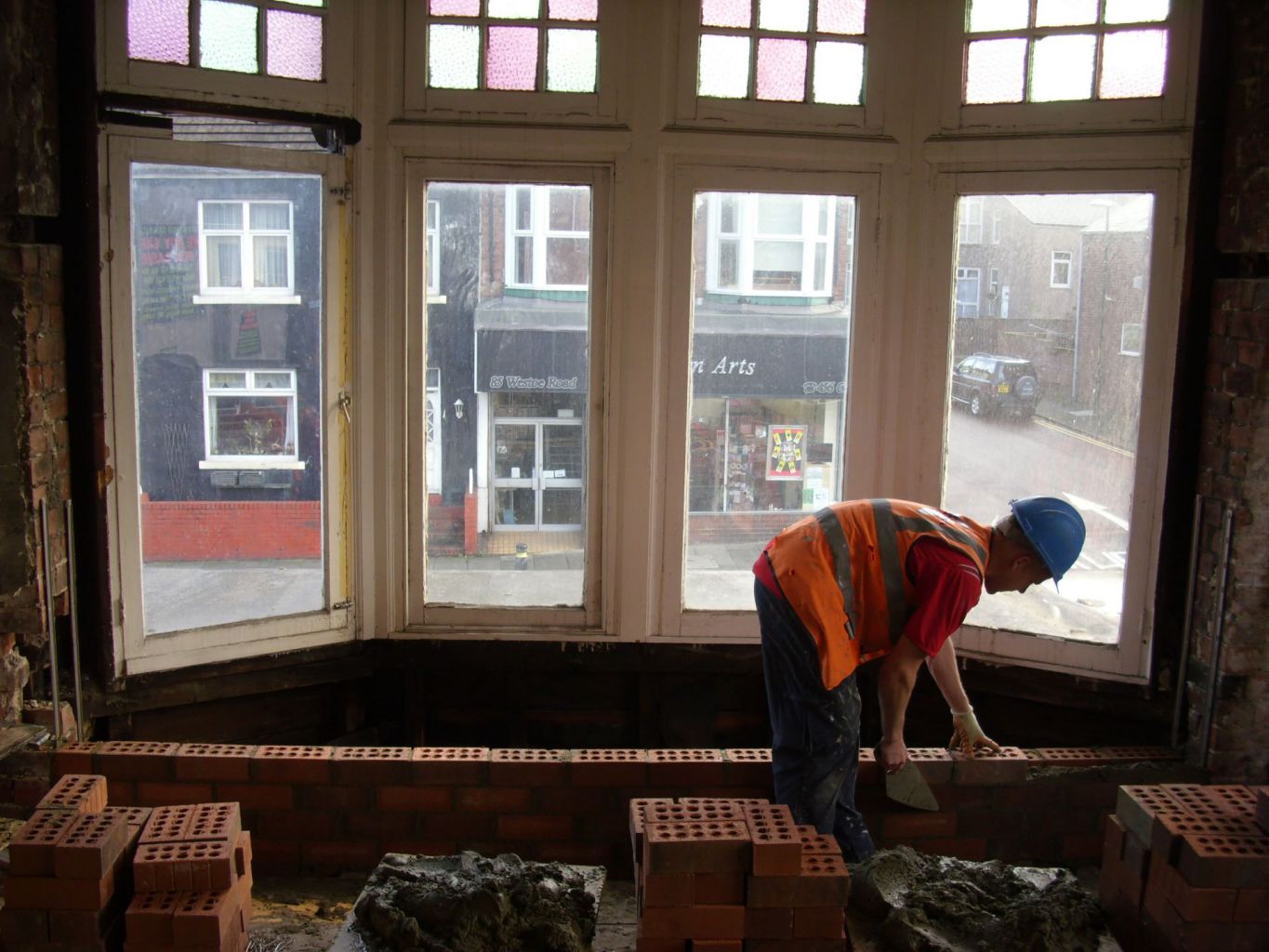 This structure had to be carefully dismantled then built back up, to be made safe during and after work. The full building was then re-plastered with new skirting boards, doors and a new roof to the shop front.