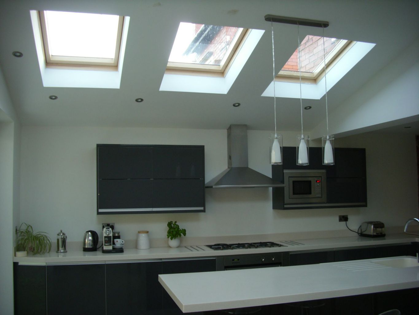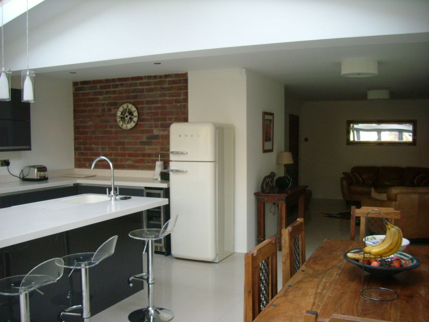 We constructed a new rear extension to accommodate a new kitchen and open plan dining area, Velux windows were added to allow natural light to flow throughout.