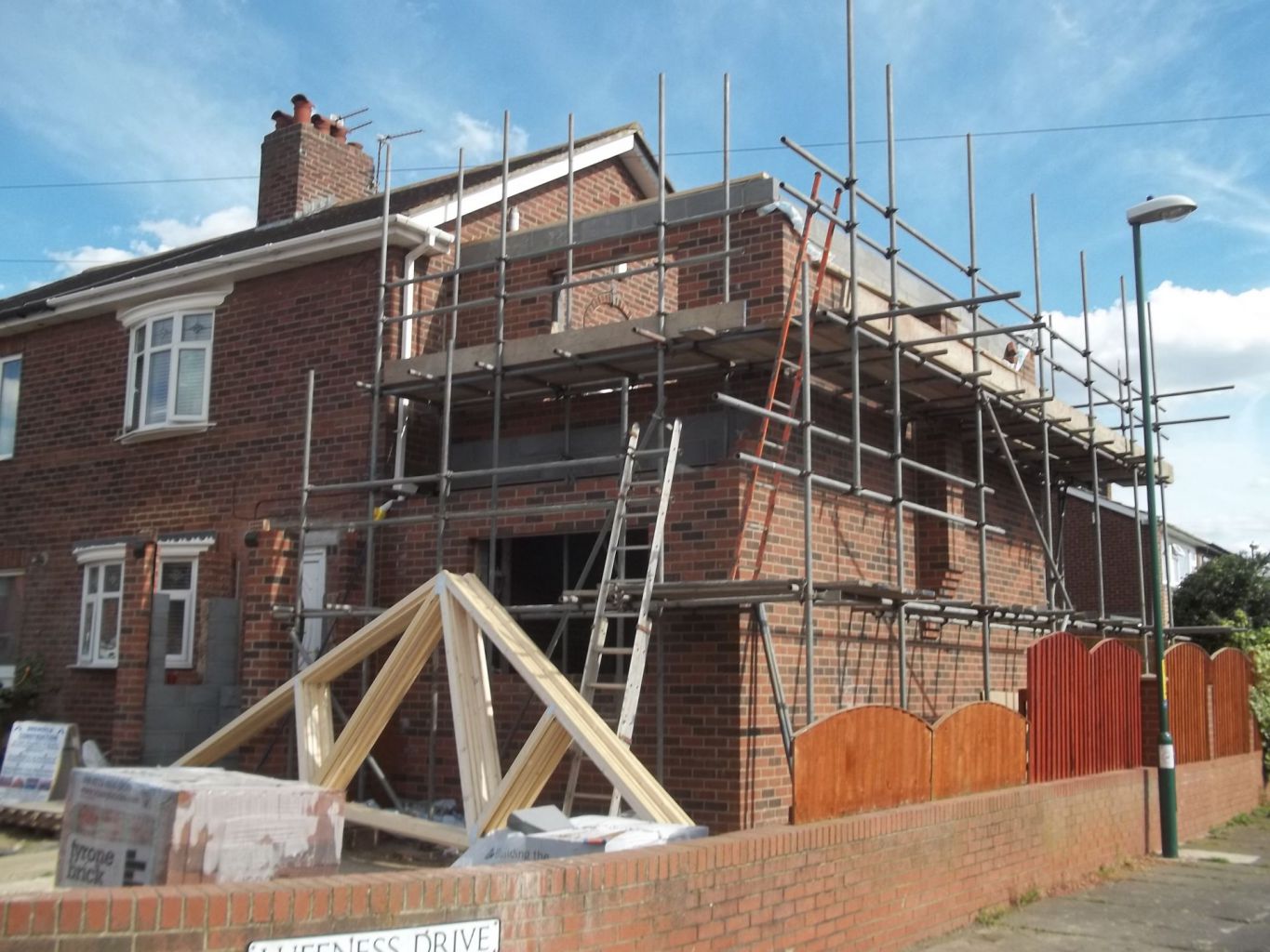 We carried out a full house conversion, double storey extension, consisting of a large living room with a brick chimney breast coming out of the gable end.